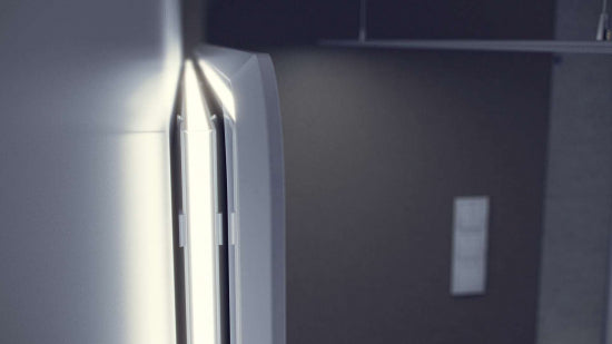 Fertiges Resultat nach der Montage des Profils A mit Abdeckung HIGH, (1) doppelseitigem Klebeband, (2) mit Montageklammer A HIGH