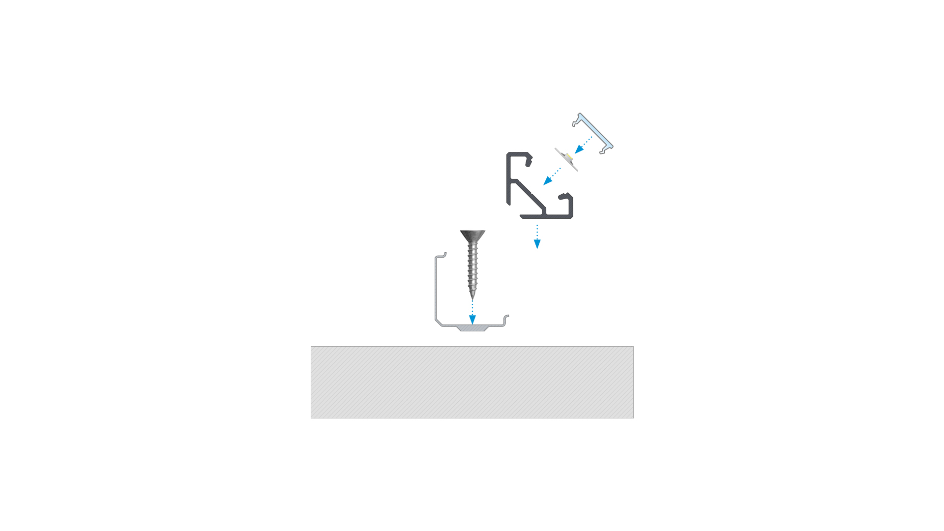 Montageanleitung für das angelehnte LED-Winkelprofil mit NANO-Abdeckung unter Verwendung der angelehnten Montagehalterung.