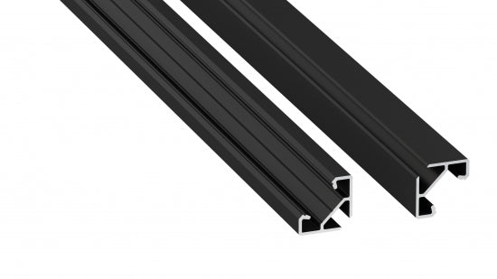 Aufputz- oder abgehängtes LED-Profil, das in einem Winkel von 45° strahlt. Ideal für gerichtete Anwendungen in der dekorativen Beleuchtung und Akzent.