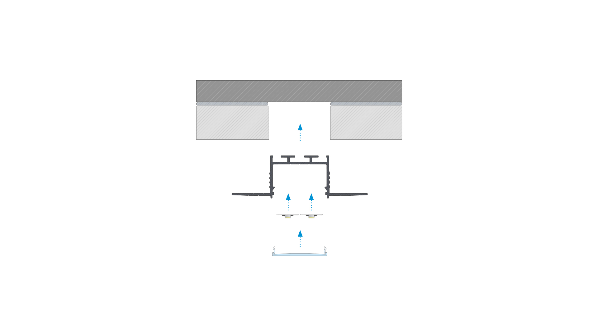 Montageanleitung für das LED-Profil mit versenkter MIDI-Abdeckung zwischen den Platten.