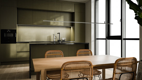 Das Endergebnis der Installation des LED-Atomprofils mit einem NANO-Lampenschirm unter Verwendung Atom-Montagehalterung.