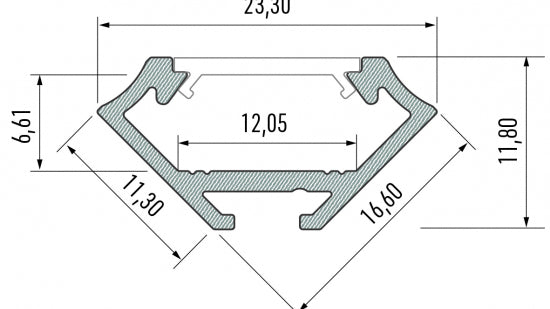 C Lumines Aluprofil Ecke mit einem Neigungswinkel von 45 Grad LED. Eines der modernsten und minimalistisches Design. Hervorragend geeignet für Designer Kombination von zwei senkrechten Flächen und überall dort , wo es notwendig ist , das Licht , das aus dem Profil in einem Winkel von 45 Grad zu lenken.