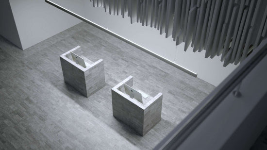 Fertiges Resultat nach der Montage des DULIO-Profils mit einer verborgenen Netzteil unter Verwendung der Seilaufhängungen Typ Y zusammen mit dem WIDE Abdeckung und DOUBLE Abdeckung