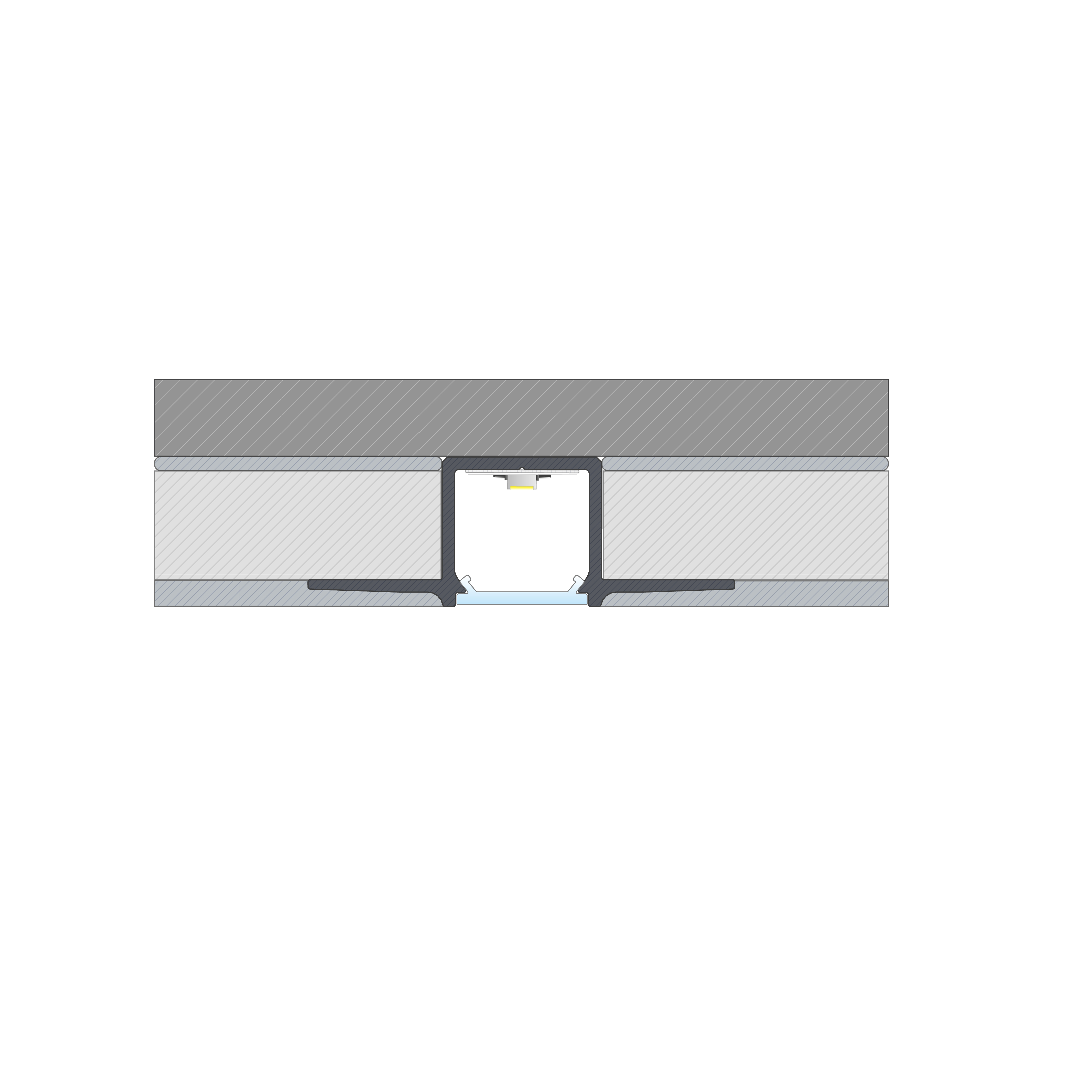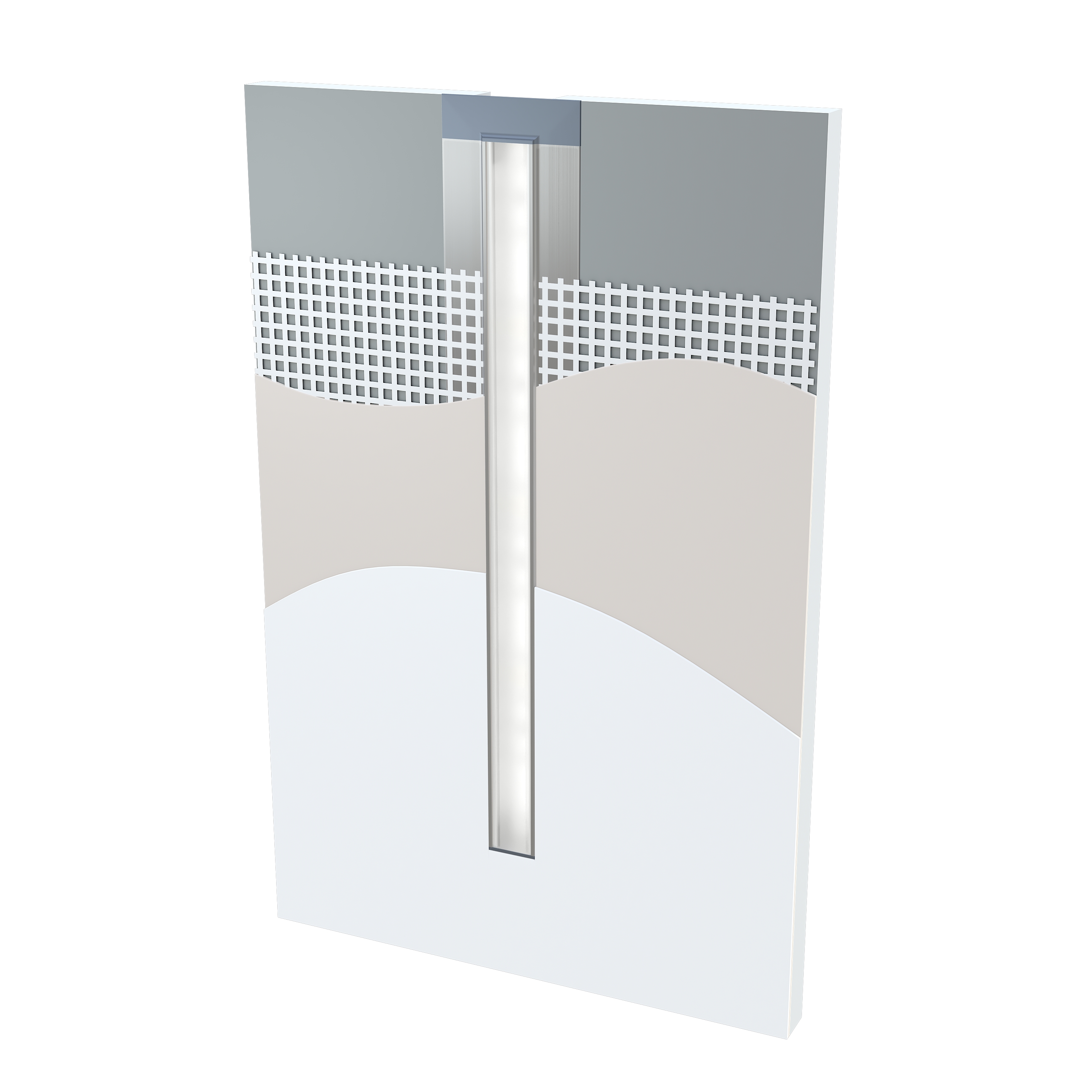 Fertiges Resultat nach der Montage des Profils GAUDI mit Abdeckung BASIC eingelegt zwischen zwei Gipskartonplatten und dann verputzt