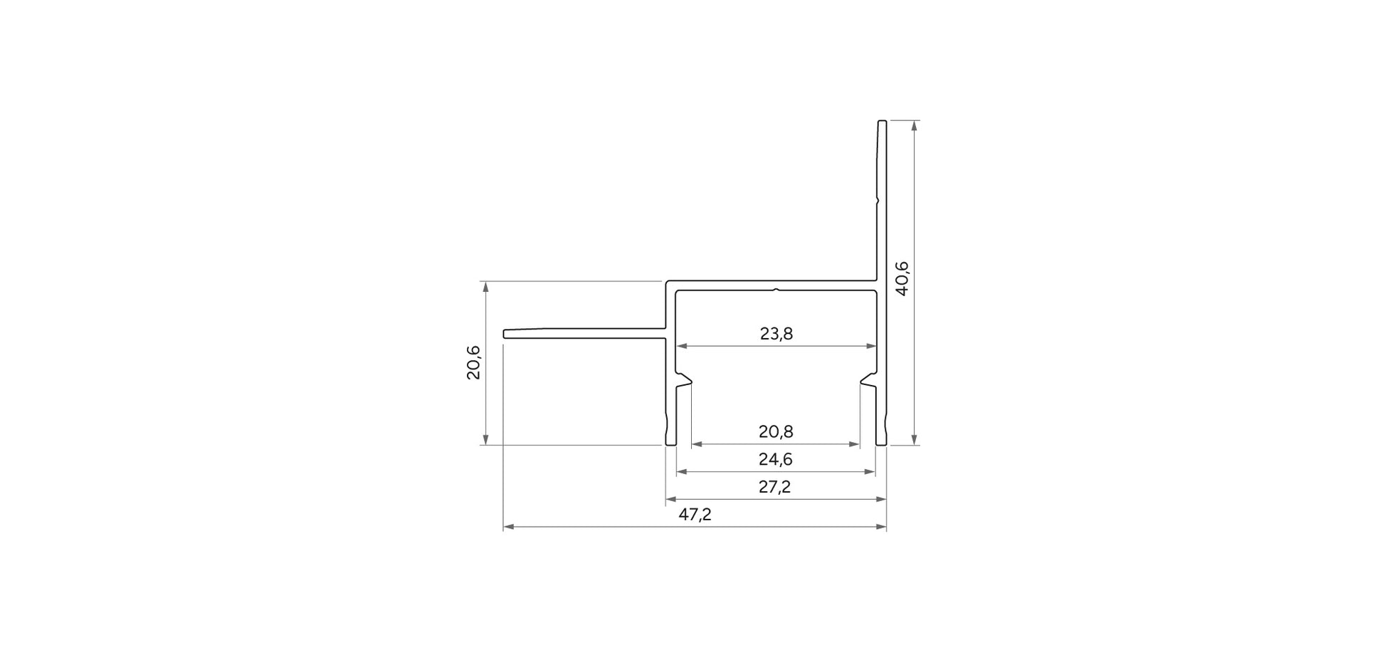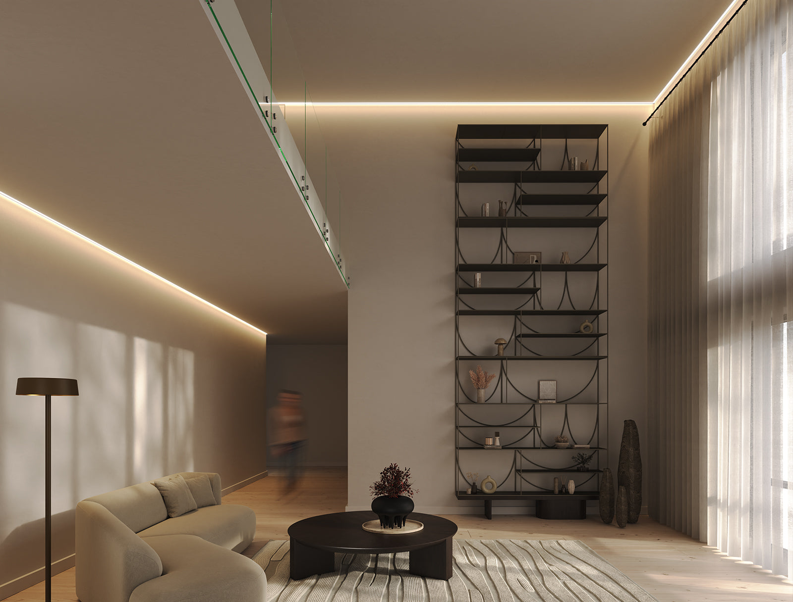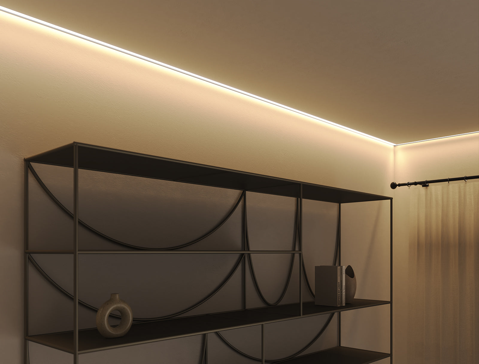 MOTTA – Decken- und Wandprofil zum Verputzen. Geeignet als Akzentbeleuchtung mit doppeltem LED-Streifen.