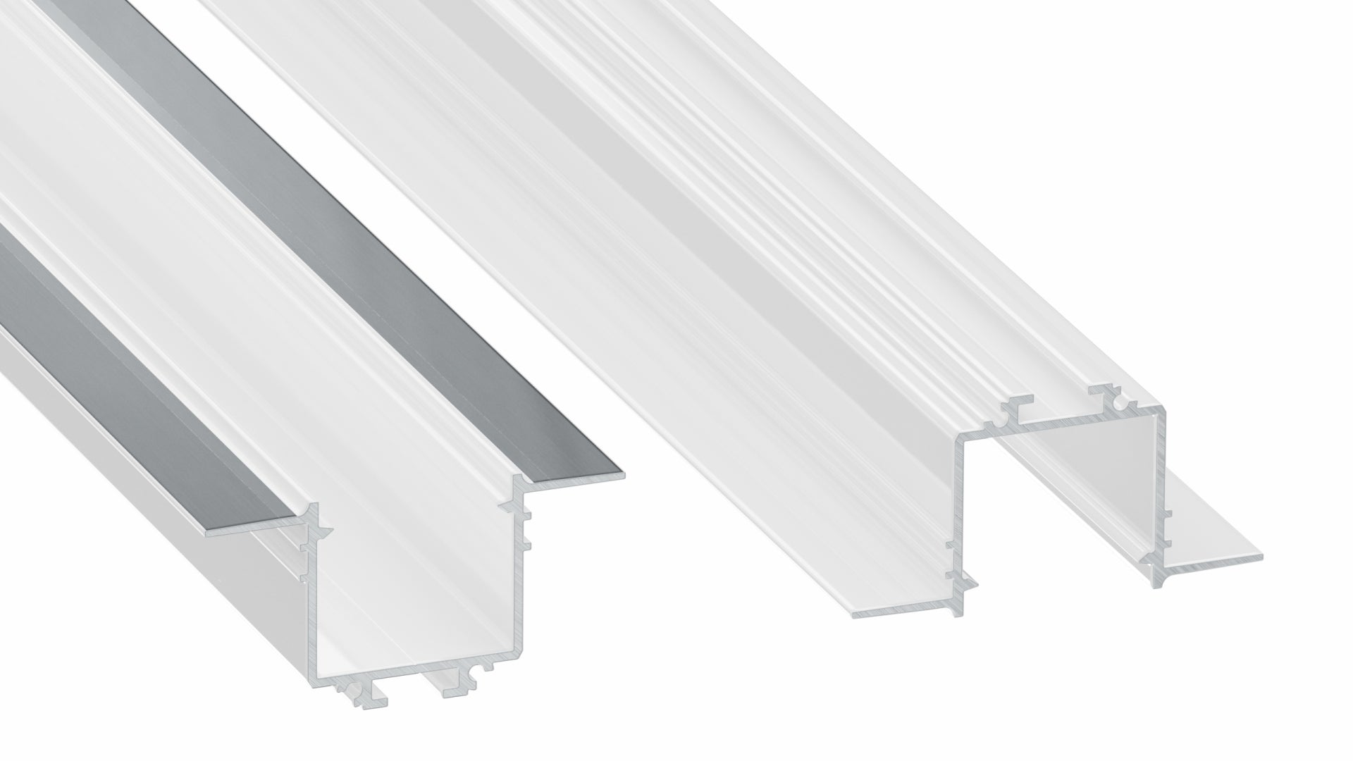 Abdeckung: – DOUBLE PMMA: transparent, frostweiß, milchweiß, frosted milchweiß, schwarz – Raster-Abdeckung (silber) (Montiert von oben – Klickmontage) Endkappen: – Aluminium, mit Loch, in drei Farben (weiß, silber, schwarz) Weiteres Zubehör: – Montagefedern – Quer-Winkelverbinder 90° – Flacher Winkelverbinder 90° / 120° – Gerader Verbinder |